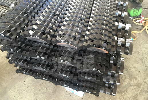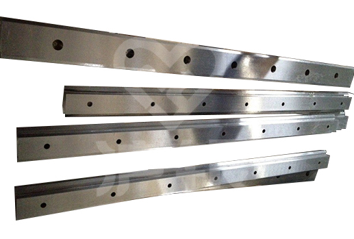 剪板機的刀片材質一般有T10、9CrSI、6CrW2Si、Cr12MoV 、H13,合金鋼等幾種材質。